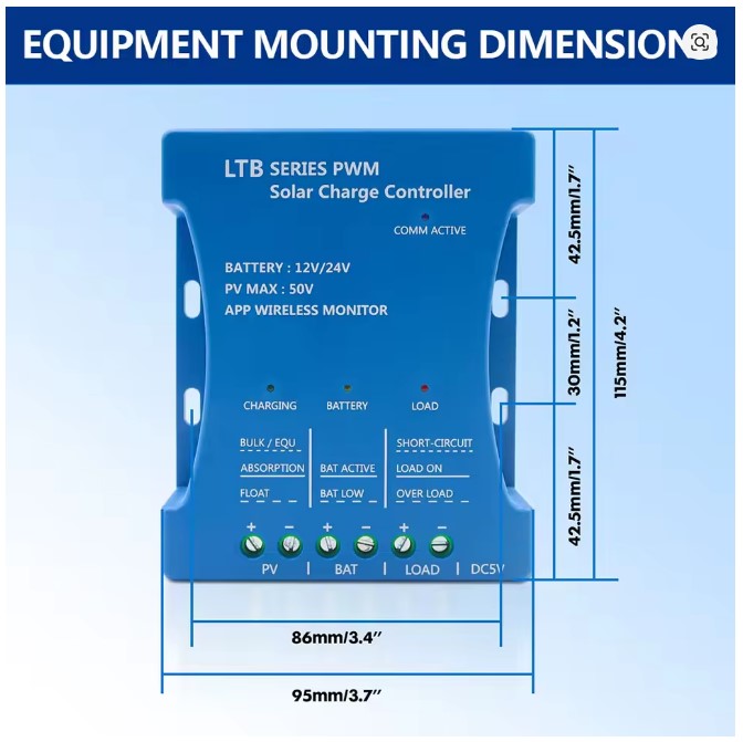 - הבקר מתאים עצמו אוטומטית גם למערכות 12V וגם למערכות 24V.